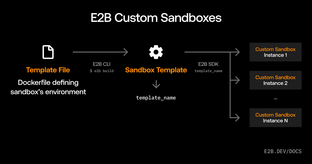 - You build a custom sandbox by creating the Sandbox Template which is a Dockerfile describing the environment of your sandbox.